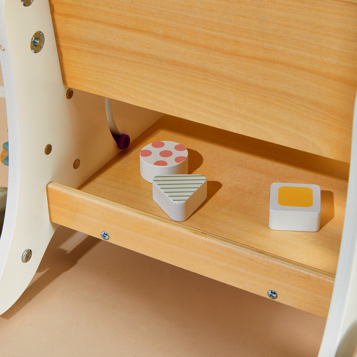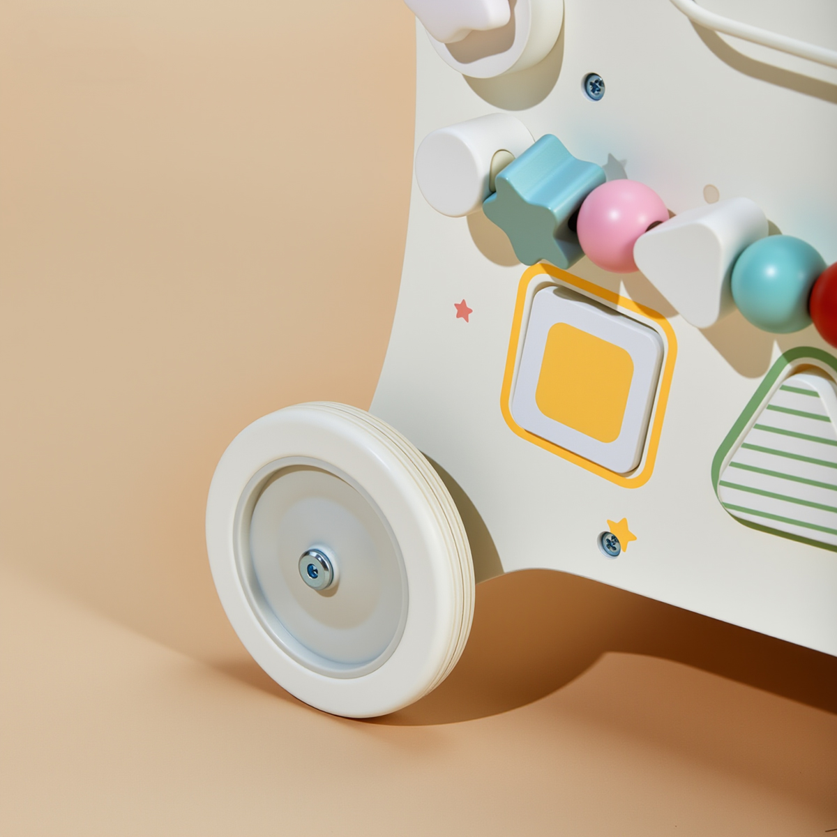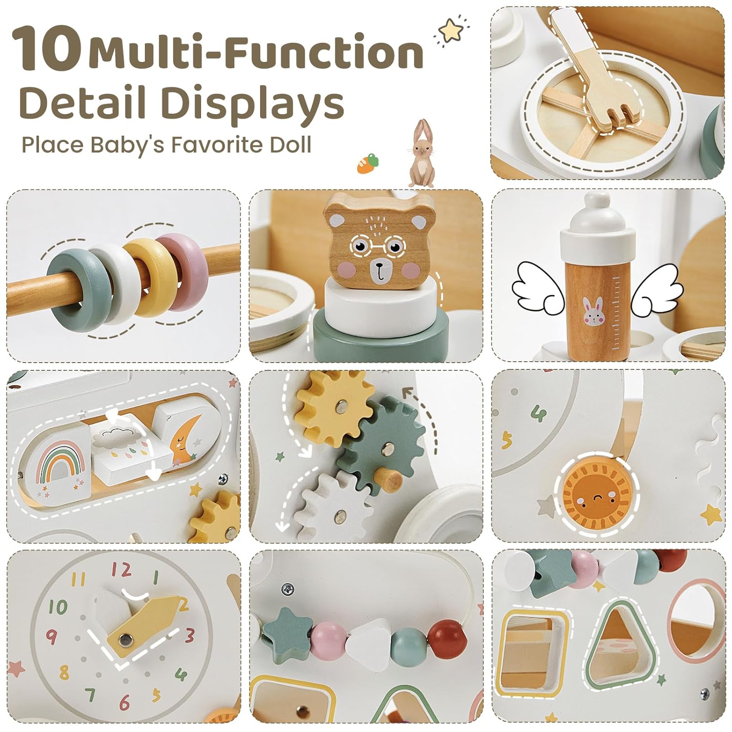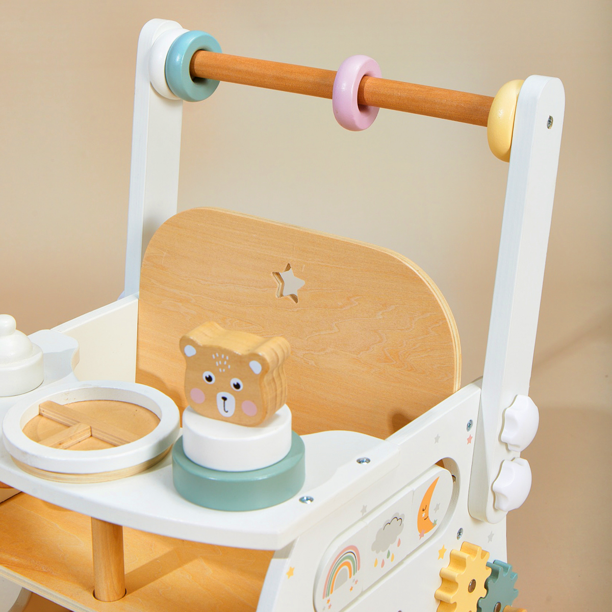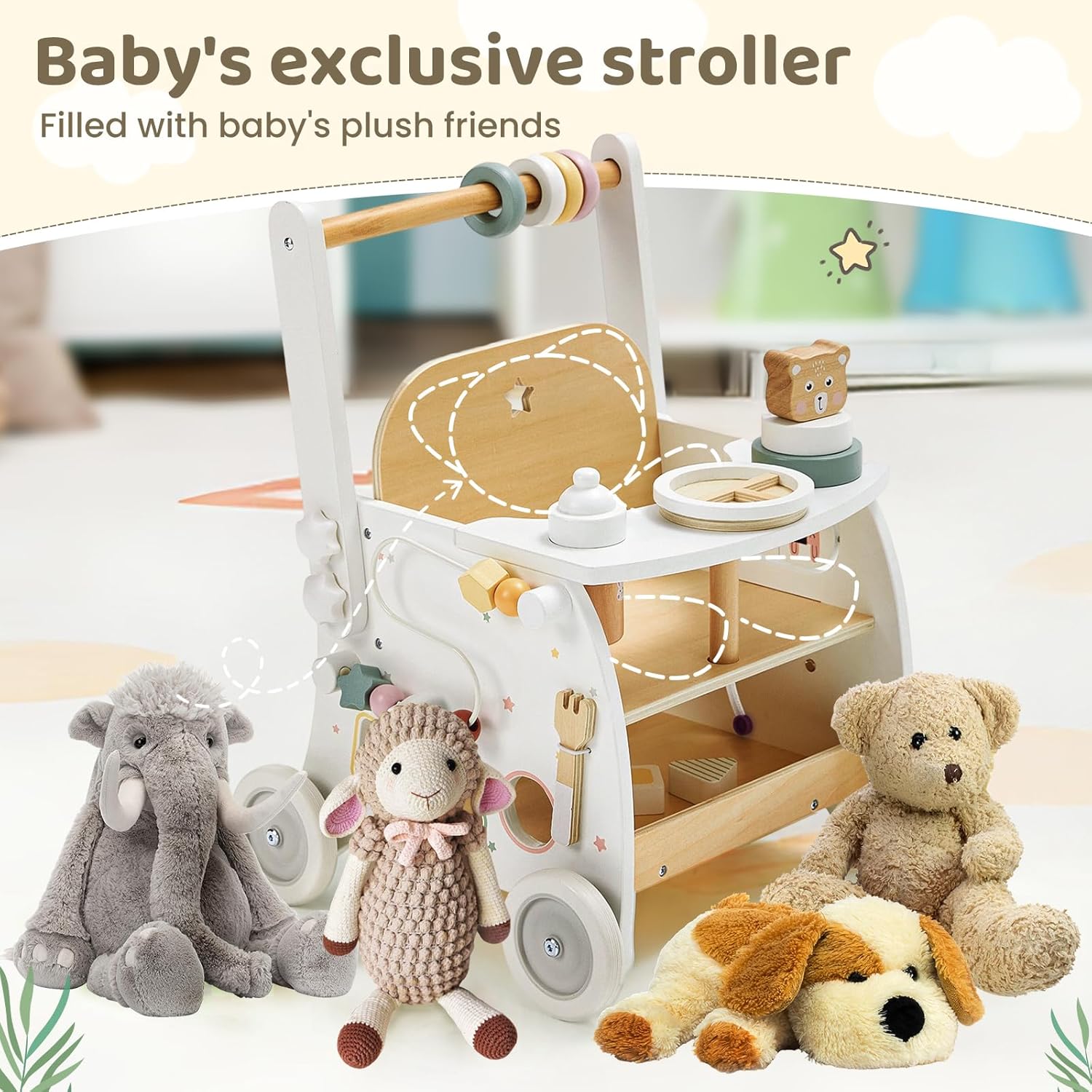 Wooden push walker with doll stroller and countless fun activities — for toddlers 12M+.