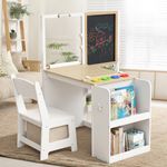 3 in 1 kids art table and chair set, easel table for kids; toddler craft and play wood activity desk with adjustable double-sided magnetic easel, paper roll, storage box, book shelves