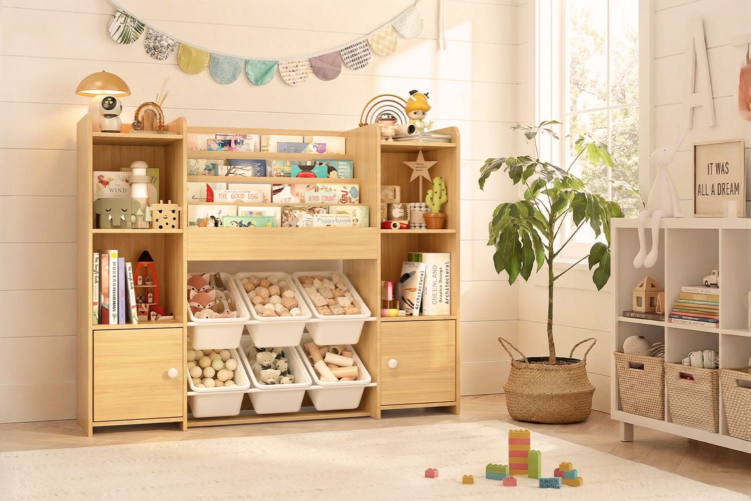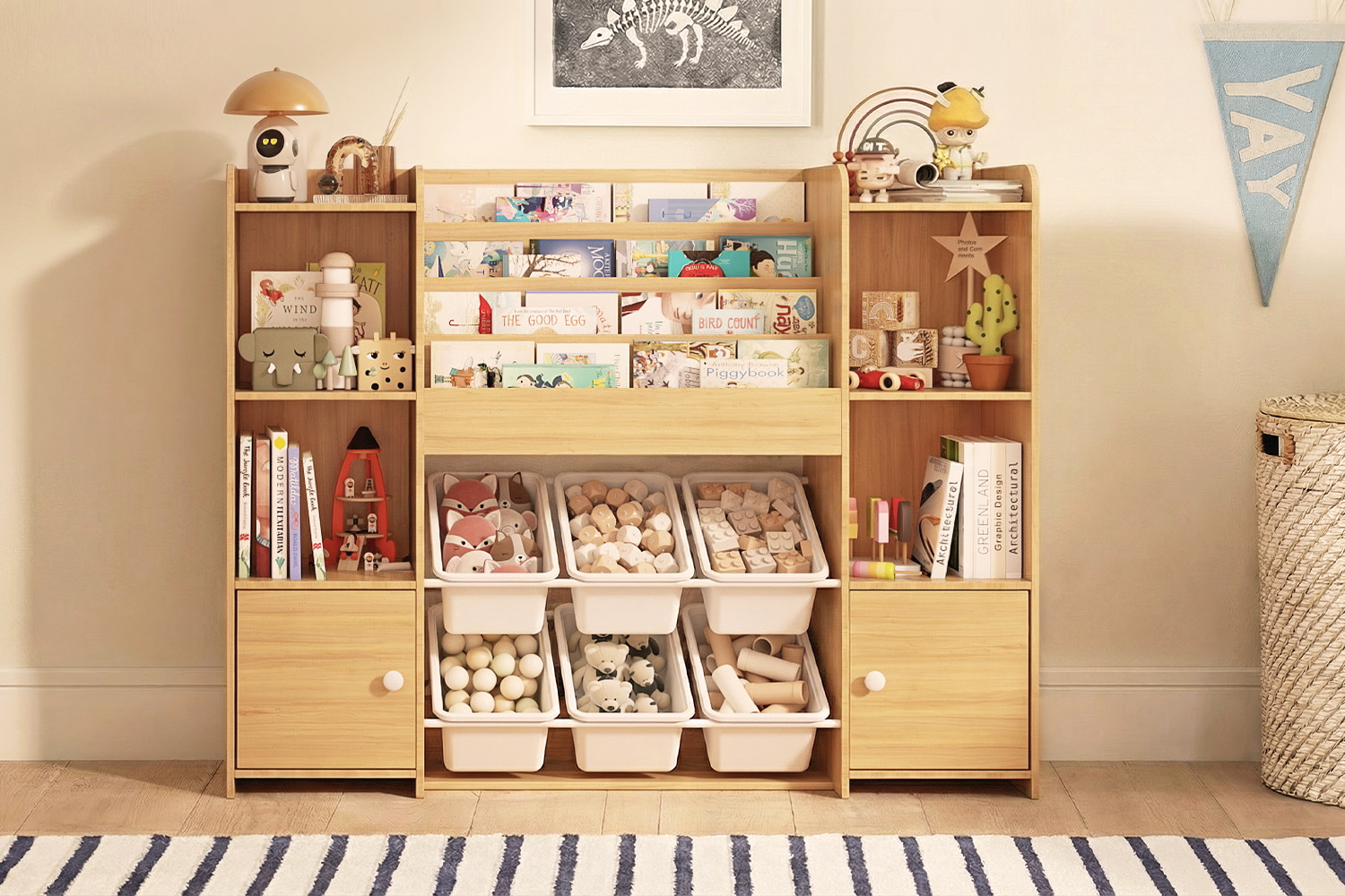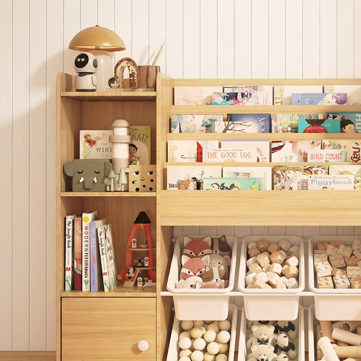 Are you struggling to organize your child's numerous toys and books? This large-capacity storage cabinet will help keep everything neat and tidy!