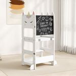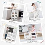 3-in-1 Kitchen Wooden Stool Helper with Chalkboard Montessori for Toddlers.