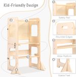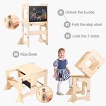 Toddler Standing Tower, Learning Standing Tower 2-in-1 Kitchen Wooden Stool Helper with Chalkboard Montessori and Waldorf Helper for Kids in Kitchen Step Stool with Desk Table and Chair