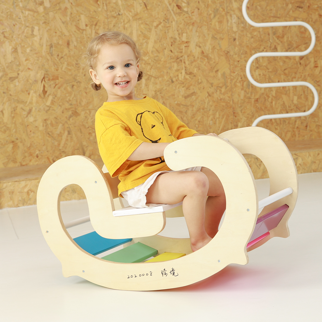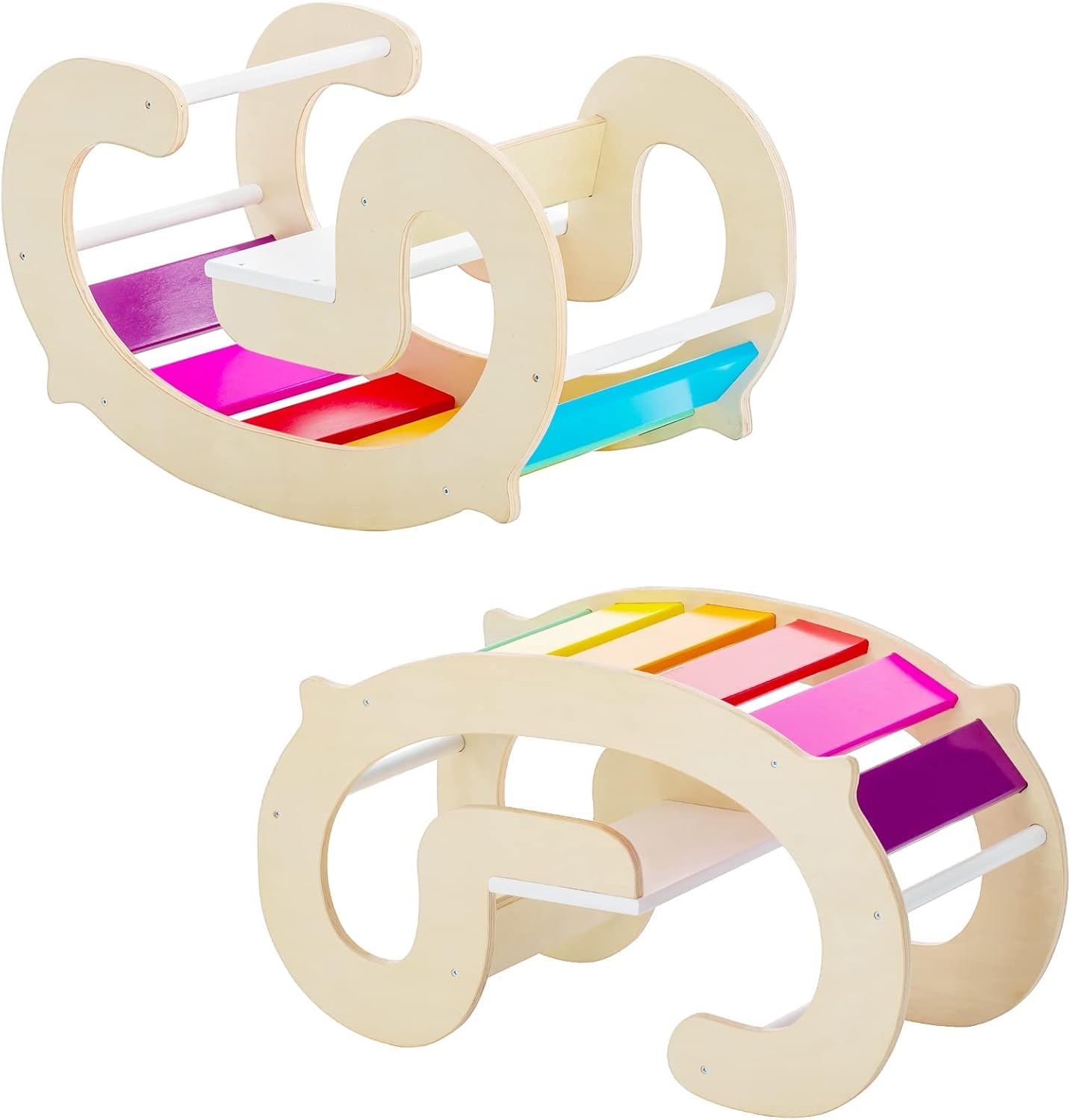 Labebe Wooden Rainbow Rocking Chair for Kids, Wooden Climbing Toy for Boys & Girls Age 36M+.